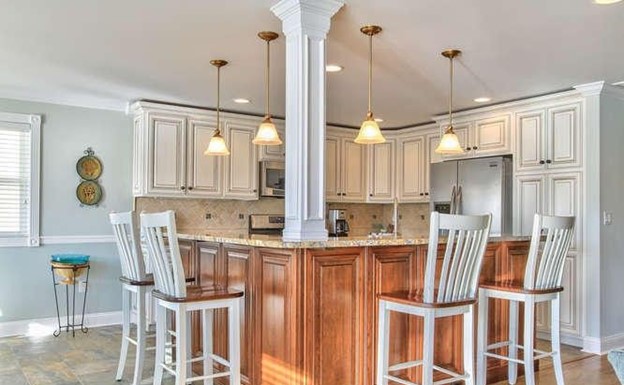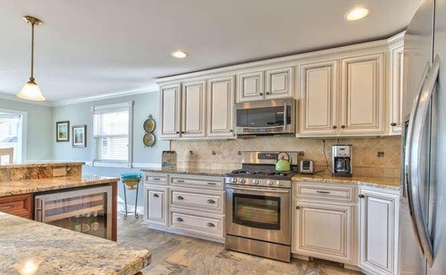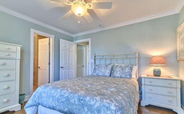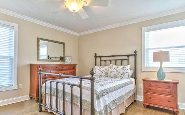 This beautifully furnished space has four bedrooms that can sleep up to ten people and two and a half baths. It also has a large open concept living space with a full kitchen. The outdoor patio area is equipped with a grill, eating area, and private outdoor shower.